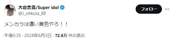 • 大倉忠義さんのX(@J_ohkura_88)より