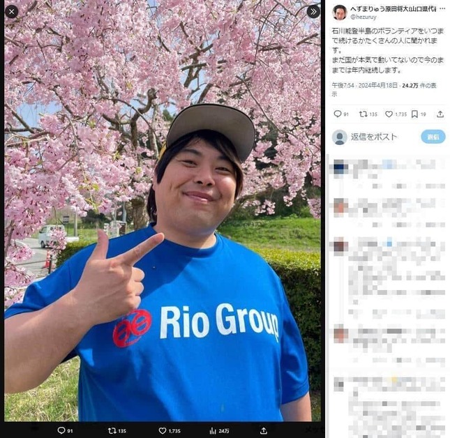 へずまりゅうさんのX(@hezuruy)より