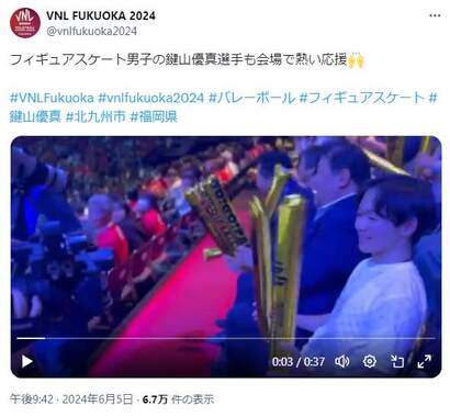フィギュアスケート男子の鍵山優真選手も会場で熱い応援??#VNLFukuoka #vnlfukuoka2024 #バレーボール #フィギュアスケート #鍵山優真 #北九州市 #福岡県 pic.twitter.com/s3slgwgjjH