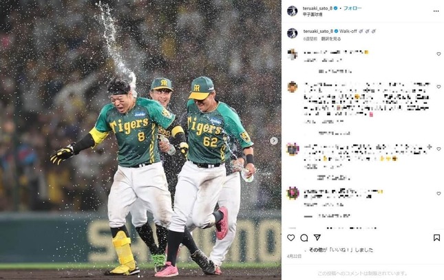• サヨナラ打の佐藤(佐藤のインスタグラムより)