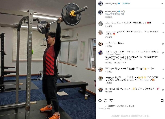 • 筋トレする佐藤(佐藤のインスタグラムより)
