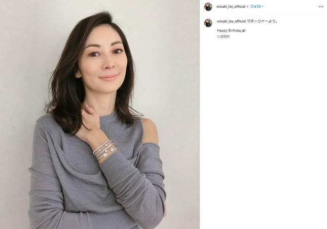 伊東美咲さんのインスタグラム(@misaki_ito_official)より