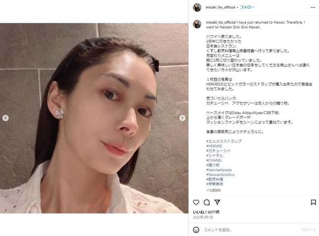 • 伊東美咲さんのインスタグラム(@misaki_ito_official)より