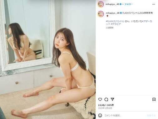 奈良さんは12月28日、白いランジェリー姿の上目遣いショットを投稿。ファンからは、「美しすぎて気絶しそう」、「眩しすぎて直視出来ない」などの声があがった。
