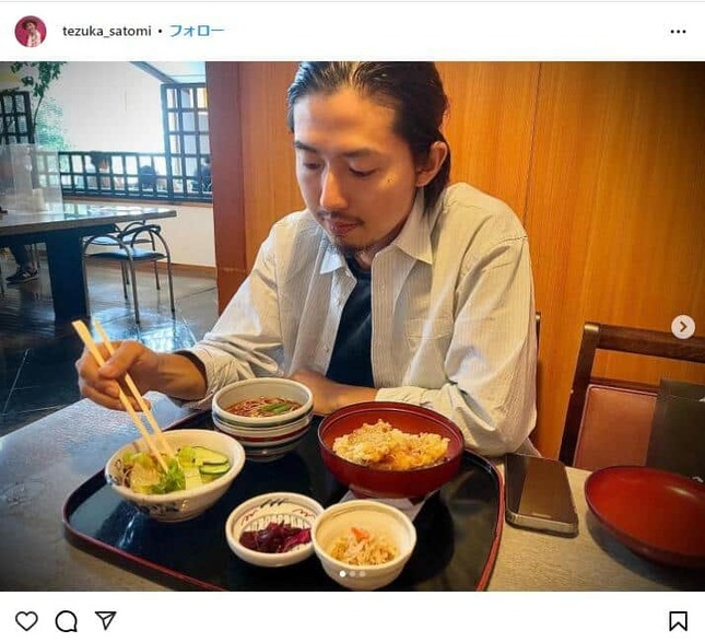 手塚さんが公開したのは、蕎麦と天丼のセットを前にする日南人さんの写真。「次男とランチ」をともにしたようだ。そして「日南人君、、、引き続き、お芝居の稽古お気張りやす!」とエールを送った。日南人さんは6月21日から23日に行われる演劇ユニット「イクルィ」の公演に出演予定だ。