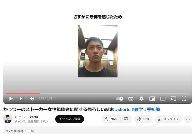チャンネル登録135万人の人気YouTuber・かっつーさんが2024年6月11日、YouTubeで熱心な女性ファンがとった「さすがに恐怖を感じた」行動と、その「恐ろしい」結末を明かした。