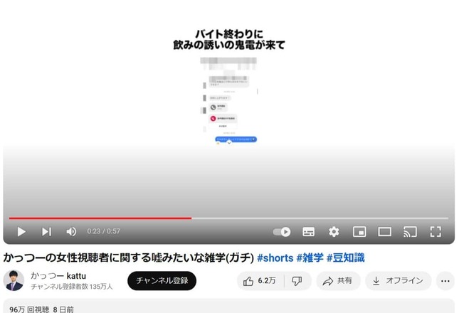 かっつーさんは6月4日、「かっつーの女性視聴者に関する嘘みたいな雑学(ガチ)」と題する動画を投稿した。