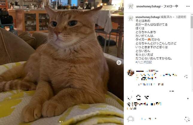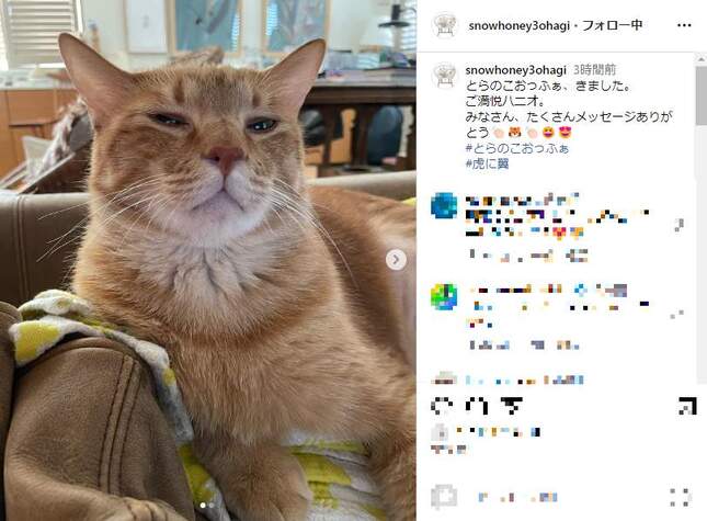 石田さんはその後、ペットの写真を公開しているインスタグラムアカウントを更新し、「とらのこおっふぁ、きました」とつづり、ハニオくんの別ショットを披露。心なしかドヤ顔をしているようにも見えるその写真に「ご満悦ハニオ」と記しつつ、「みなさん、たくさんメッセージありがとう」と反響へのお礼もつづっている。