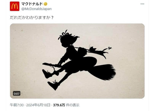 日本マクドナルドは2024年6月17日から18日にかけて、公式X「マクドナルド」(@McDonaldsJapan)で、アニメ映画でも有名な児童書「魔女の宅急便」に関連した投稿を続けている。マクドナルドとのコラボレーションがあるのだろうか、Xでは期待が高まっている。