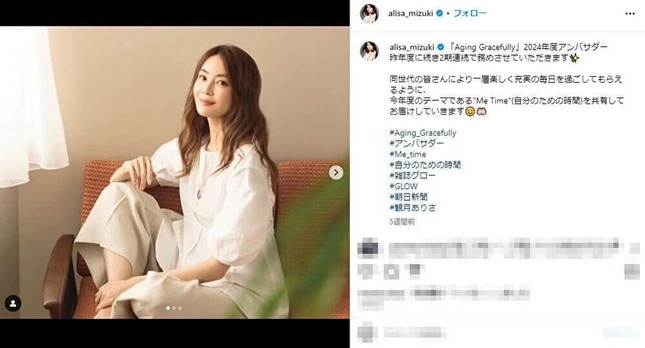 観月ありささんのインスタグラム(@alisa_mizuki)より