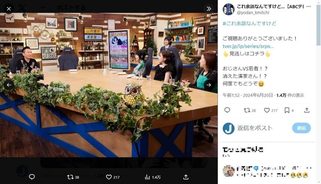 — これ余談なんですけど...【ABCテレビ公式】 (@yodan_kmitchi) June 19, 2024