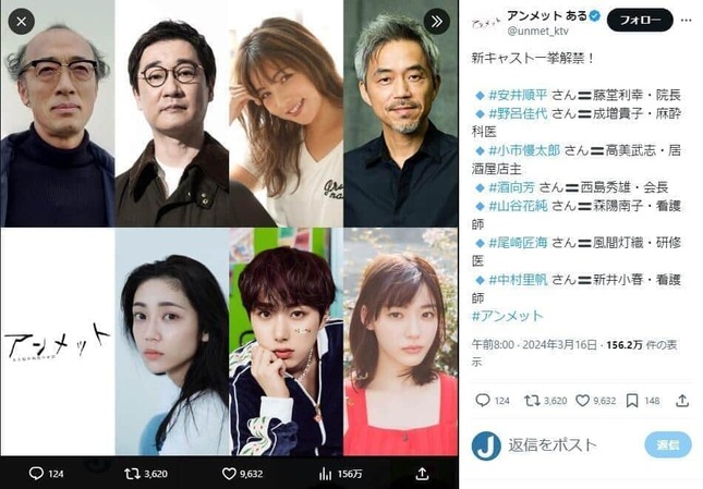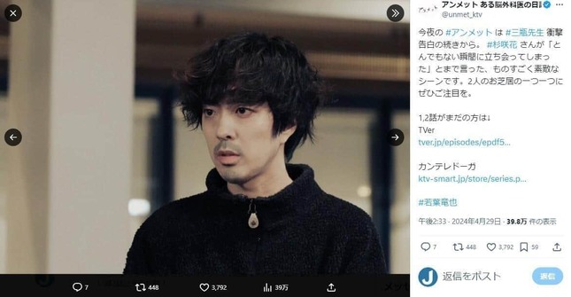 「アンメット ある脳外科医の日記」公式X(@unmet_ktv)より