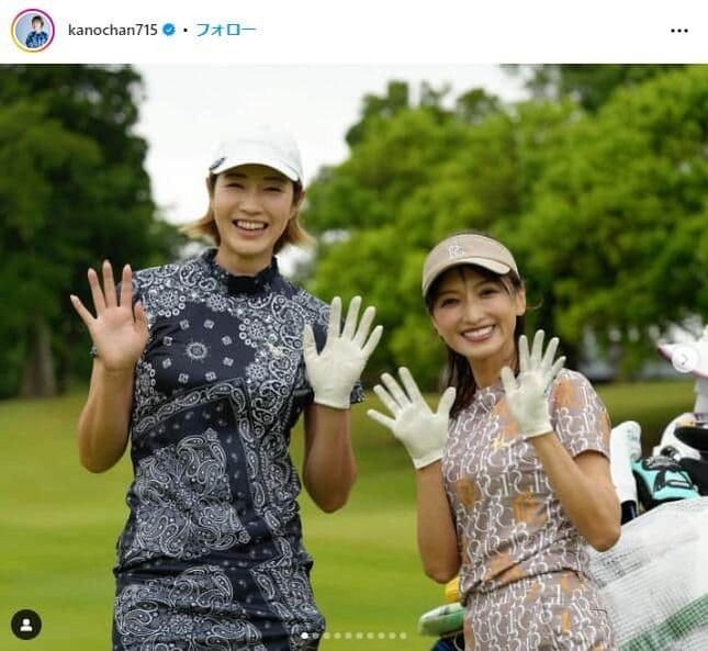 元バレーボール女子日本代表の狩野舞子さんが2024年6月24日、フリーアナウンサーの望月理恵さんとのゴルフ姿のツーショットをインスタグラムで公開し、「2人とも可愛い」と反響を呼んでいる。