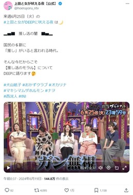 • 「上田と女が吠える夜」公式X(@hoeruyoru_ntv)より