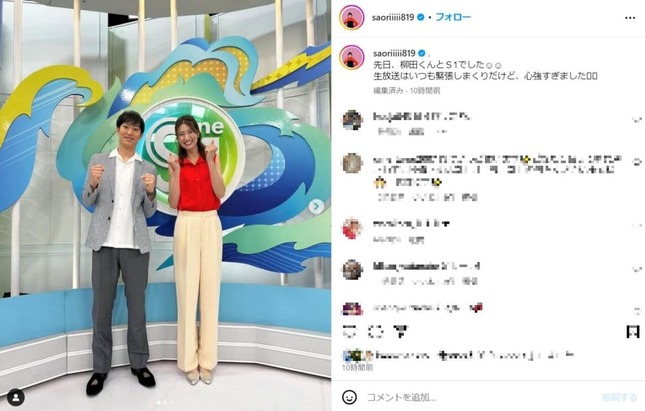 「先日、柳田くんとS1でした 生放送はいつも緊張しまくりだけど、心強すぎました」とし、柳田さんとの2ショットを公開。木村さんはオレンジのノースリーブに薄い黄色のパンツを合わせ、両手でガッツポーズしている。柳田さんは白のシャツに薄いグレーのジャケット、濃いグレーのパンツを合わせ、同じく両手でガッツポーズしている。