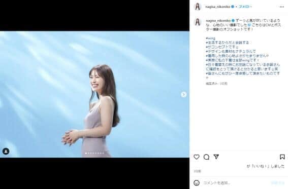 渋谷さんは2024年6月22日、「ワコール」が手掛ける「wing」のCM撮影オフショットを投稿した。キャミソールやランジェリーを爽やかに着こなしている。