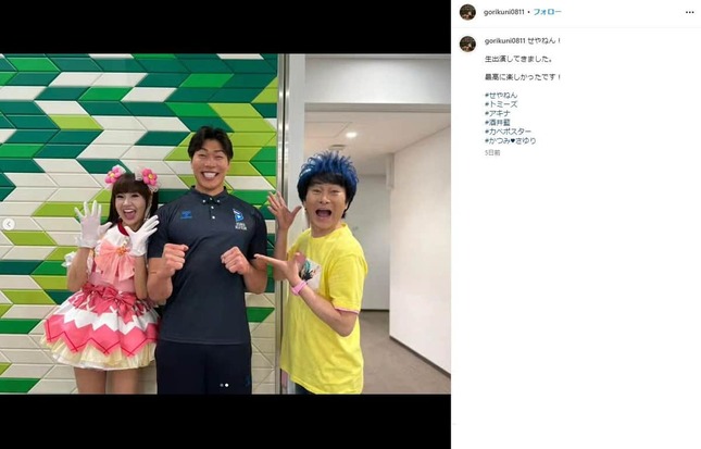 清水選手は放送終了後、Xとインスタグラムでスタジオのパネラーたちとの集合写真と、レギュラー出演するかつみ・さゆりの2人との3ショットを公開した。
