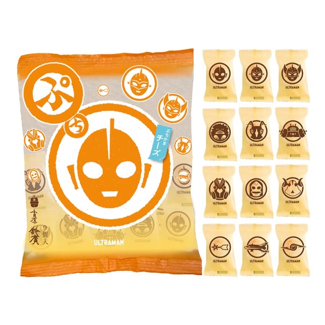 さらに、9個の個包装の小さなかまぼこが入った「ウルトラマン ぷちかま」(843円)は、かまぼこの中にクリームチーズが入った商品。包装デザインにはウルトラマンシリーズのキャラクター12種類のバリエーションがある。