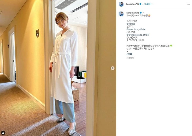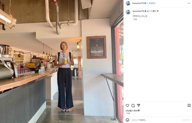 元女子バレーボール選手の狩野舞子さん(35)が2024年6月29日にインスタグラムを更新し、カフェ店内での写真を公開した。公称身長185センチの狩野さんの頭が天井に届きそうな写真に、SNSでは驚きの声が上がっている。