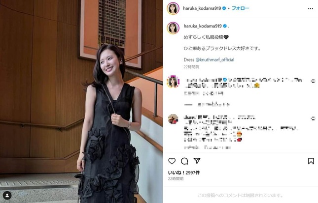 元HKT48で俳優の兒玉遥(こだま・はるか)さんが2024年6月30日、インスタグラムで私服の黒いドレスを披露した。