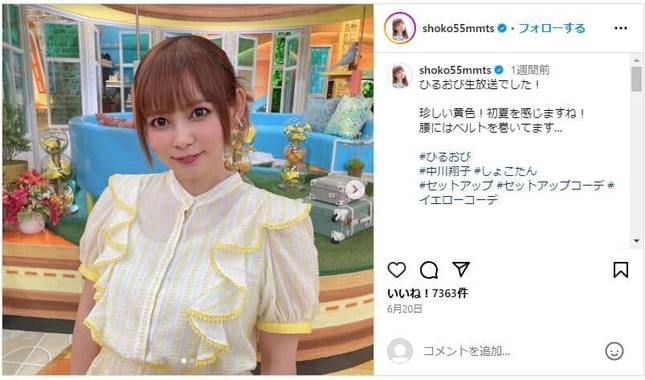 中川翔子さんのインスタグラム(@shoko55mmts)より