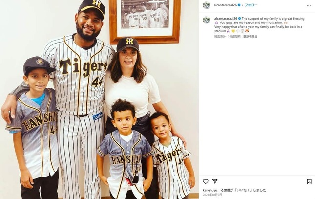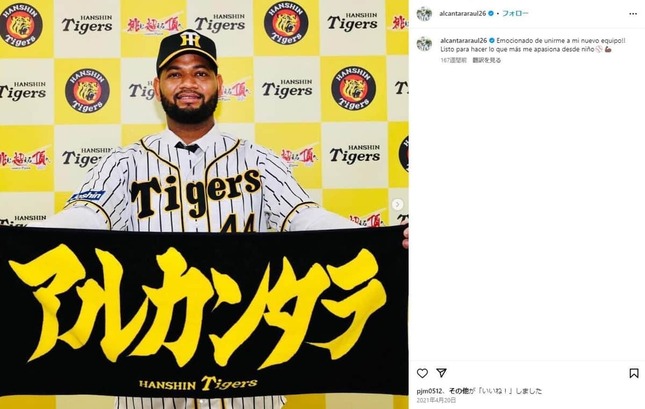 阪神時代のアルカンタラ(アルカンタラのインスタグラムより)