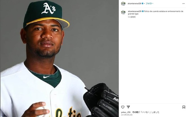 • 大リーグ時代のアルカンタラ(アルカンタラのインスタグラムより)
