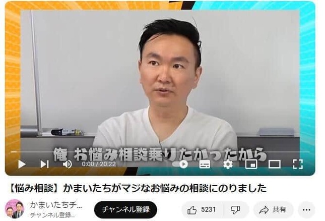 人気お笑いコンビ「かまいたち」の山内健司さんが2024年7月4日にYouTubeで公開した動画で、夫の友人を結婚式に呼びたくないという女性の悩みに回答した。