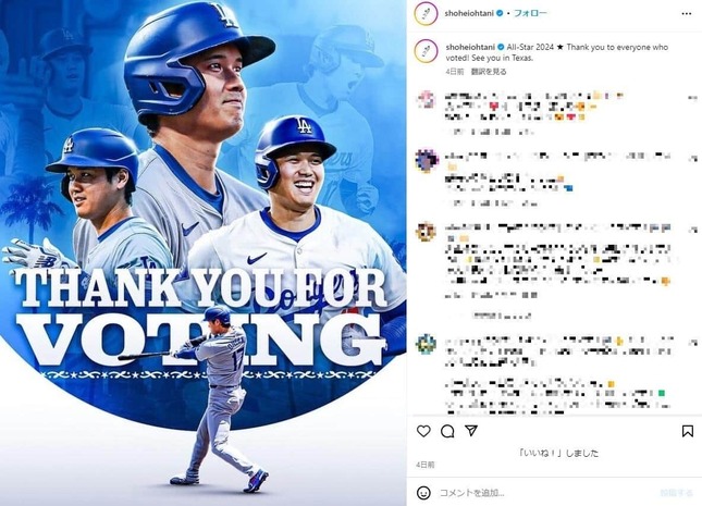 今シーズン打者に専念している大谷は8日時点で、打率.314、28本塁打、65打点、20盗塁を記録している。本塁打はナ・リーグトップで、打率は2位。打点はリーグ3位につけており、40本塁打、40盗塁を視野に入れている。