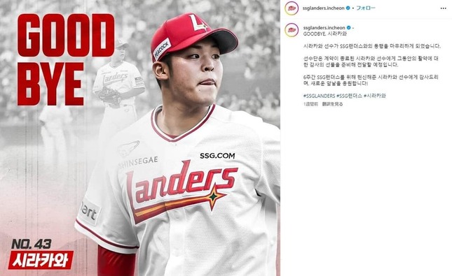 • SSGに別れを告げる白川(SSGインスタグラムより)