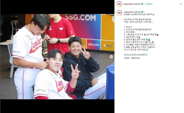 • SSGのチームメイトと(SSGインスタグラムより)