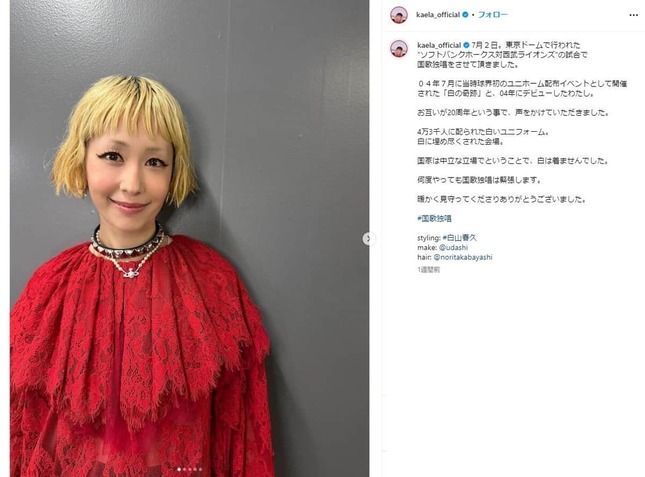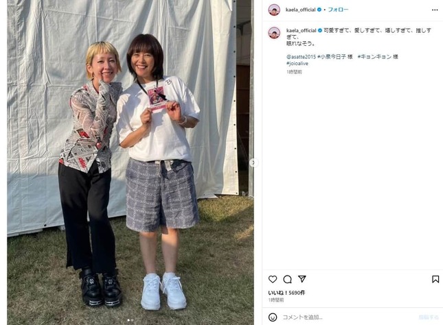 歌手の木村カエラさん(39)が2024年7月16日にインスタグラムを更新し、俳優の小泉今日子さん(58)との2ショットを公開した。SNSでは「2人ともかわいい」などと注目を集めている。