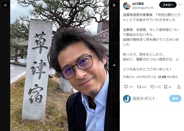アイドルグループ「TOKIO」元メンバーの山口達也さんが2024年7月16日、自身のXを更新し、アルコール依存症に対する考えを明かした。SNSでは、「たっちゃんを心から応援します」などの反響が寄せられている。