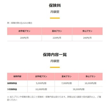 LINEヤフーグループでZフィナンシャル傘下のPayPay保険サービスが運営する「PayPayほけん」の「熱中症お見舞い金」は、熱中症により病院で点滴治療を受けた場合や入院した場合に見舞金を受け取ることができる。請求には診断書は不要だ。1日100円から加入できる「期間選択型プラン」と、月200円から加入できる「月額型プラン」がある。キャッシュレス決済アプリ「PayPay」から申し込める。受け取れる見舞金はプランにより異なるが、治療保険金が最大1万円、入院保険金が最大3万円だ。