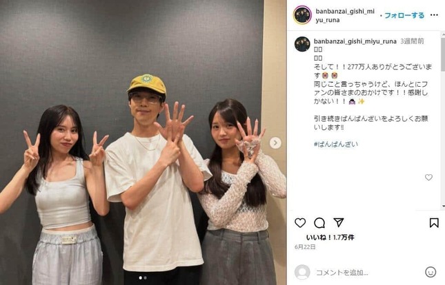 登録者278万人の人気3人組YouTuber「ばんばんざい」が2024年7月15日に公開した動画の中で、メンバーのみゆさん(25)が、リーダーのぎしさん(25)らとカラオケバーに訪れた際、盗撮被害に遭ったと報告した。