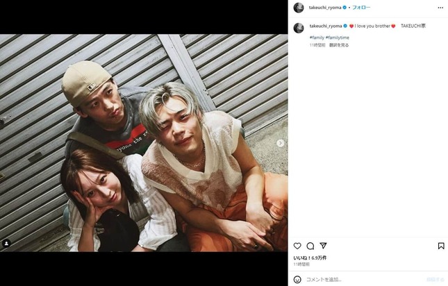 コメント欄には「竹内家の写真、豪華すぎます !!!」「美男美女 竹内3兄妹最高 」「お兄ちゃんしてる涼真君かっこよすぎて 」「美男美女しかおらん この兄弟たち最高すぎ 」などと書き込まれている。