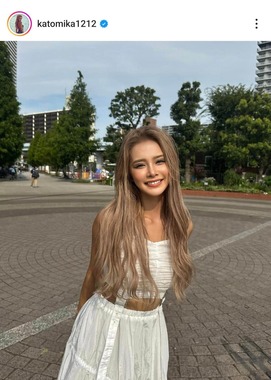 ギャル系モデルのかとみか(加藤美佳)さんがインスタグラムで2024年7月19日、自身の水着姿を公開した。