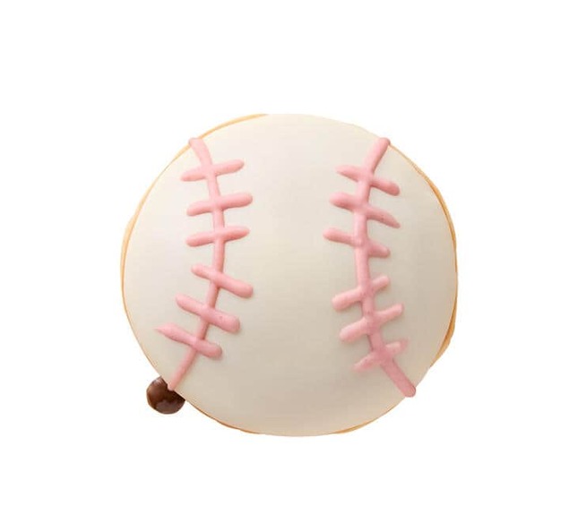 「ベースボール チョコクリーム」は、ふわふわの生地にホワイトチョコをコーティングしてチョコクリームを詰めた。ストロベリーチョコで縫い目を描き、手のひらサイズの野球ボールを仕上げたものだ。