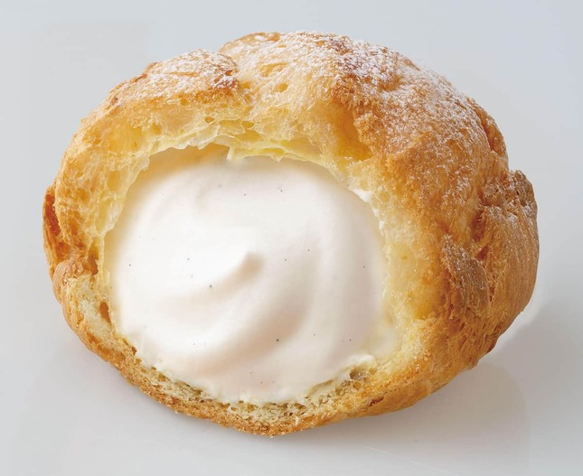 もう1つの「バニラヨーグルトクリームシュー」(270円)は、日本ルナのロングセラー商品「バニラヨーグルト」とコラボしたもの。スイーツのような感覚で食べられる「バニラヨーグルト」をイメージしており、なめらか仕立てのクリームをビアードパパのサクサク食感のシュー生地で包み込んでいるという。