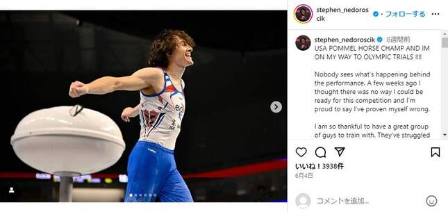 パリ五輪大会4日目の2024年7月29日、体操男子団体で銅メダルを獲得したアメリカのスティーブン・ネドロシク選手(26)が大きな話題を集めている。