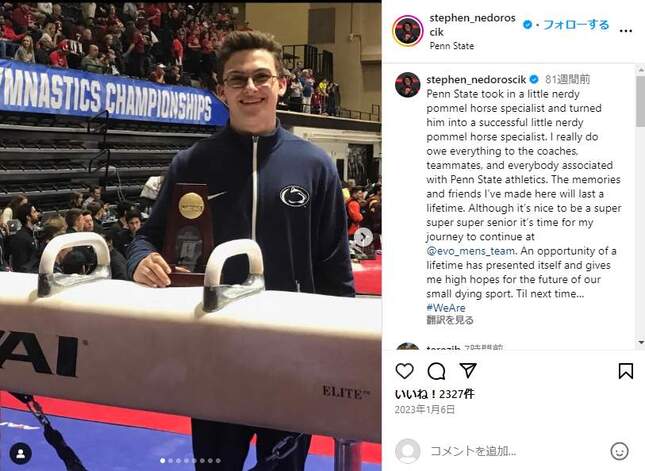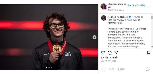 29日に行われた体操の男子団体総合決勝では、日本がリオデジャネイロ大会以来、2大会ぶりの金メダルを獲得した。金奪還に日本が沸く中、銅メダルを獲得したアメリカのSNSでは、あん馬の演技で勝利に貢献したネドロシク選手に注目が集まっている。
