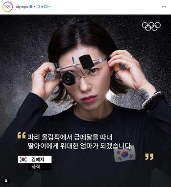 試合後から、キム・イェジ選手のプロフィール写真などがXで拡散された。なかには過去試合の動画も。黒ずくめの服装でキャップを後ろ前に被り、立ったまま片手でピストルを撃っている。射撃用メガネを着けているため、片目はドーナッツ型の覆いがかぶさっているような状態だ。