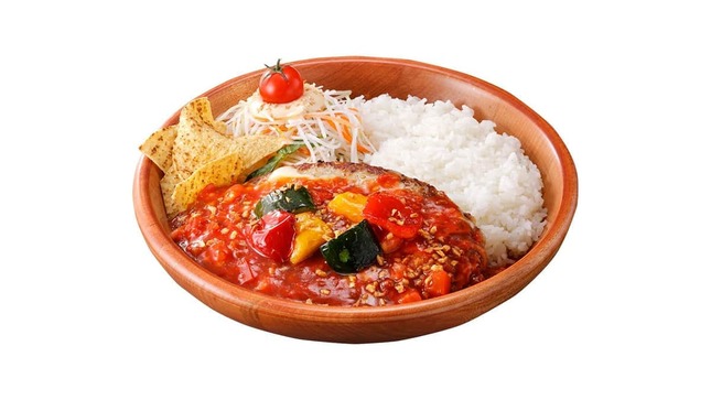 また、「角切りトマトのチーズサルサバーグディッシュ」は、スパイシーなサルサソースにカラフル野菜とチーズ、フライドガーリックを合わせ、メキシカンな味わいに仕上がっている。添えられたパリパリのトルティーヤが食事の良いアクセントになる。