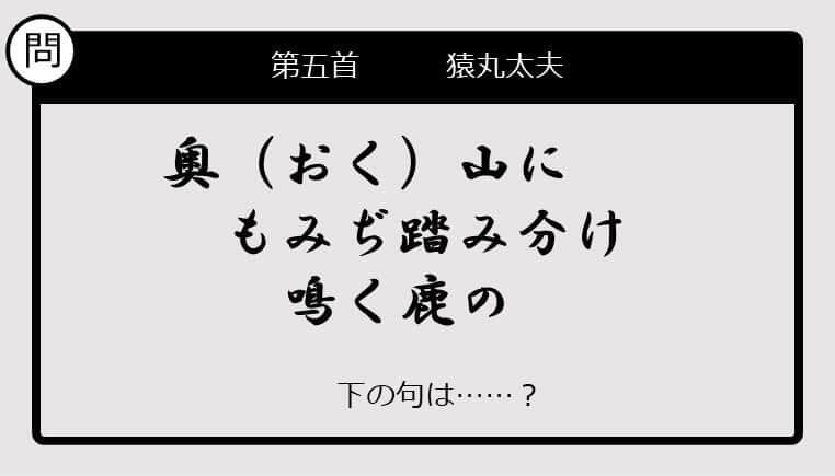 この句の続きは?1235年、藤原定家によって完成されたといわれる「百人一首」。2024年の大河ドラマ「光る君へ」の登場人物の句も選ばれている「百人一首」をクイズ形式で紹介する。本日の問題はこちら。奥山に もみぢ踏み分け 鳴く鹿の↓↓↓正解は......声聞く時ぞ 秋は悲しき