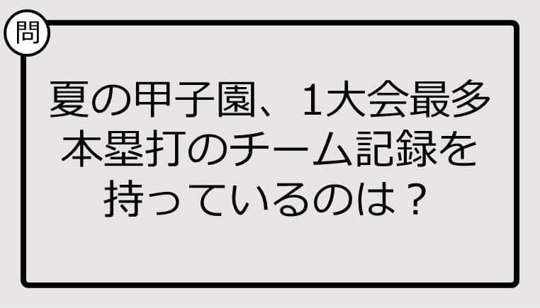 高校野球クイズ2024年の大会で106回目の開催となる全国高等学校野球選手権大会。長い歴史の中で刻まれた様々な記録を紹介する「高校野球クイズ」。本日の問題はこちら。夏の甲子園、1大会最多本塁打のチーム記録を持っているのは?↓↓↓正解は......智弁和歌山(和歌山/2000年/6試合11本)