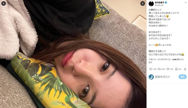 吉高さんは7日、「最近 迷惑メール?詐欺メール?って言ったらいいのかなぁ、、もう四六時中ずーっと来るし 朝起きても2.30件溜まってる時あるし」と、近況を明かした。