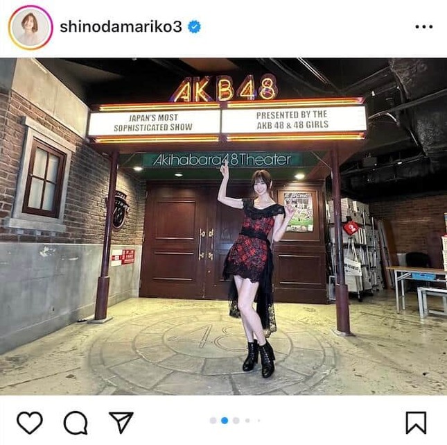 元AKB48でタレントの篠田麻里子さん(38)が2024年8月8日、自身のインスタグラムを更新。AKB時代のミニスカ衣装でステージに出演したことを報告した。