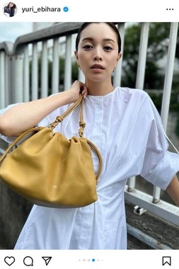 インスタグラムに投稿された写真では、ロエベ フラメンコパースを持ち、白のワンピースを着用。髪の毛をアップにしおでこが見えるヘアスタイルで、微笑んでいた。