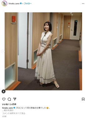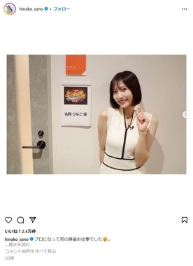 モデルで女優の佐野ひなこさんが2024年8月12日、自身のインスタグラムを更新。「プロになって初の麻雀お仕事でした」と報告した。