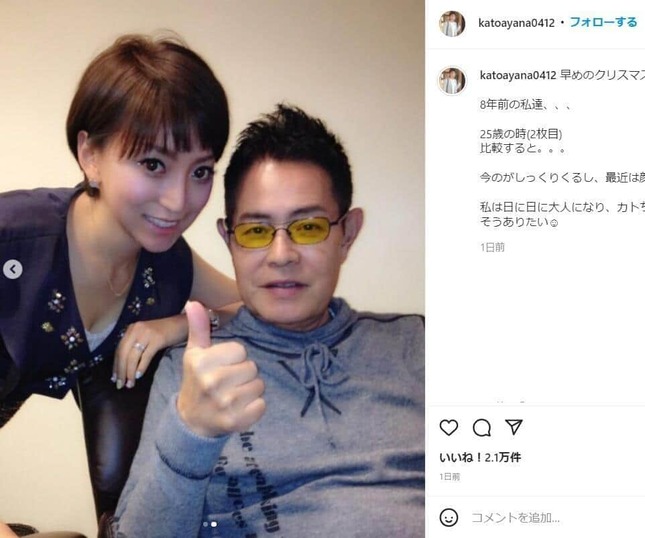 お笑いグループ「ザ・ドリフターズ」の加藤茶さん(81)の妻で、タレントの加藤綾菜さん(36)が2024年8月10日、インスタグラムでイメチェンしたヘアスタイルを披露した。
